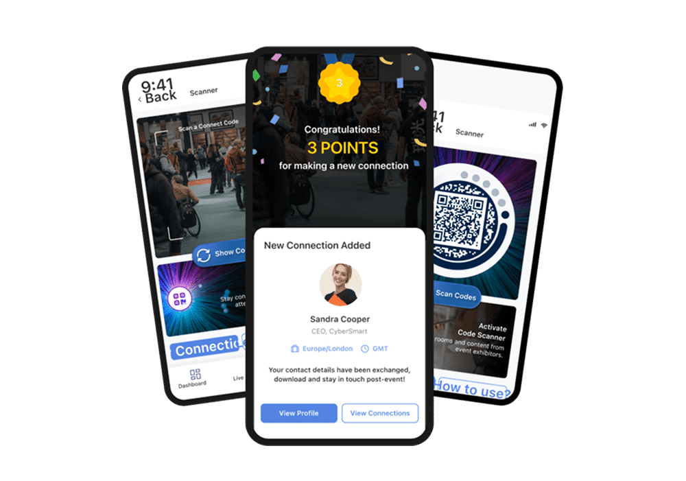 Peer-to-peer networking is quick and easy with just one scan. Users can swap digital business cards through the app.