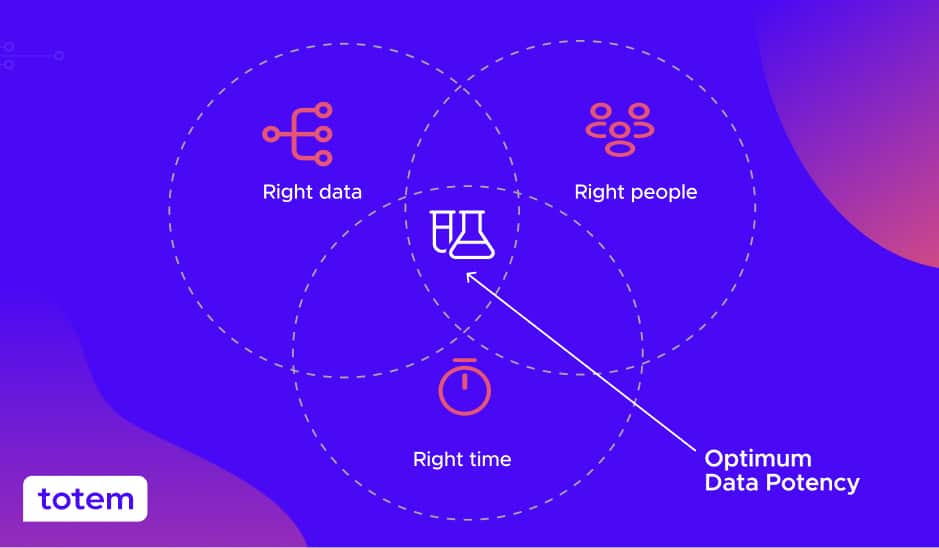 By focusing on Data Potency, we have the power to multiply our outcomes – not only doing what we’ve already been doing better and more effectively, but by creating new opportunities, and new money. So far so good but what do we mean by the right data, the right people and the right time?